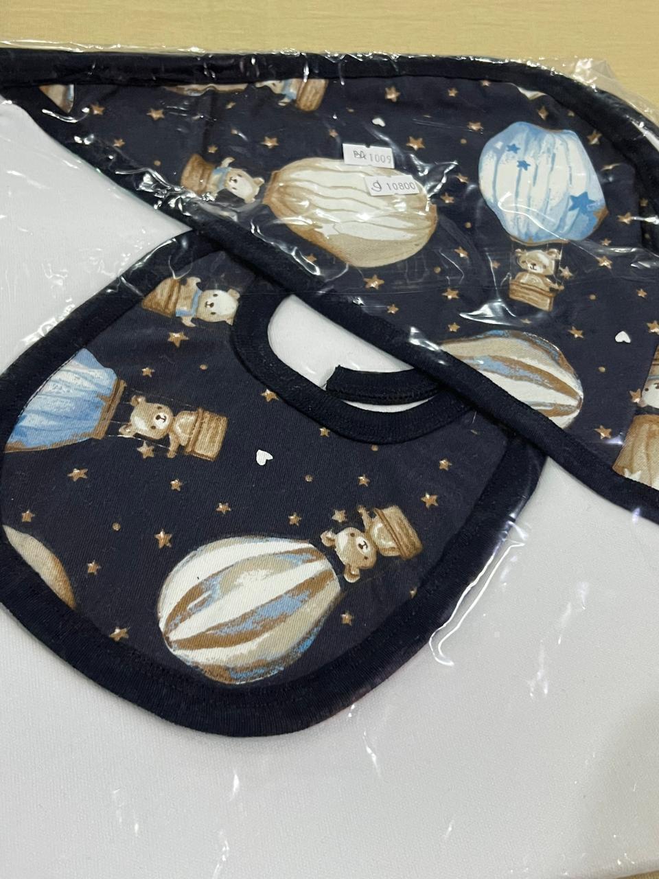 Manta recibidora de algodón con capucha + babero. Estampapa realizada en gabardina estampada.